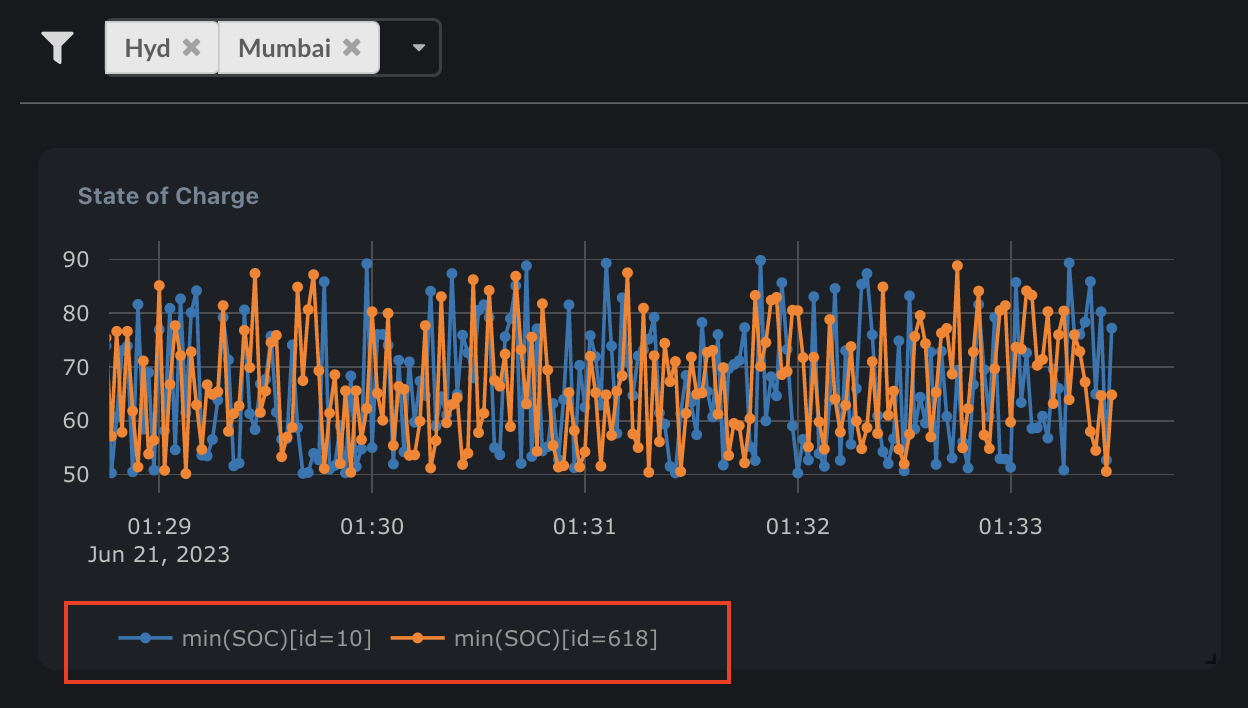 The line chart now displays data selected based on device ID grouping in Fleet dashboards, enabling you to easily correlate information for individual devices. Utilize dashboard filters to focus on a specific set of devices, further enhancing the line chart’s clarity and usefulness.