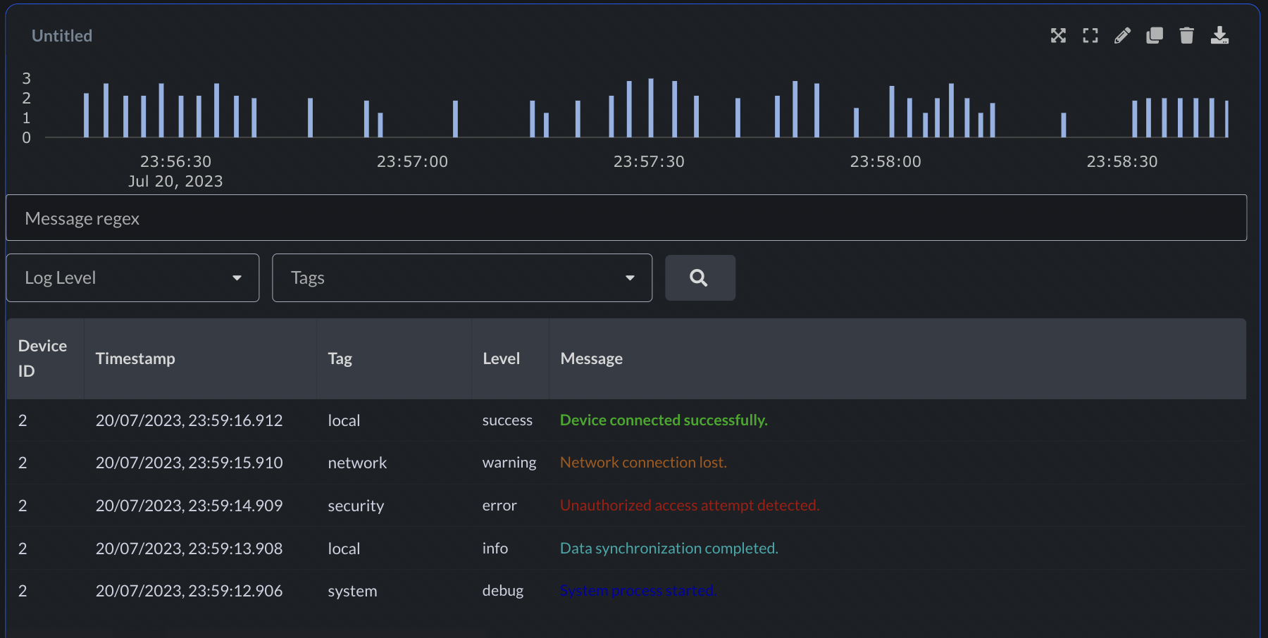 Color encoding in the logs panel