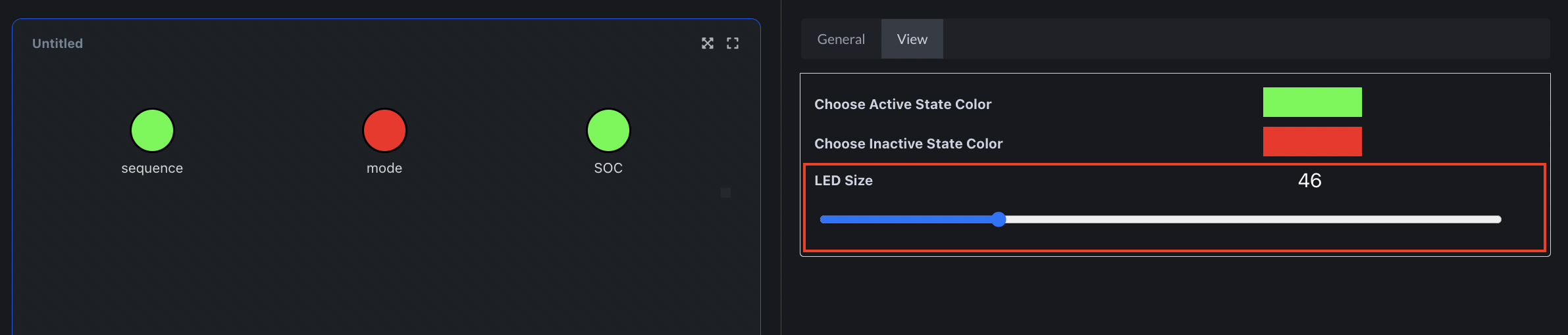 The LED panel now offers the flexibility to choose the size of the LED circles. Additionally, they are presented in a visually appealing grid layout, departing from the previous table layout.