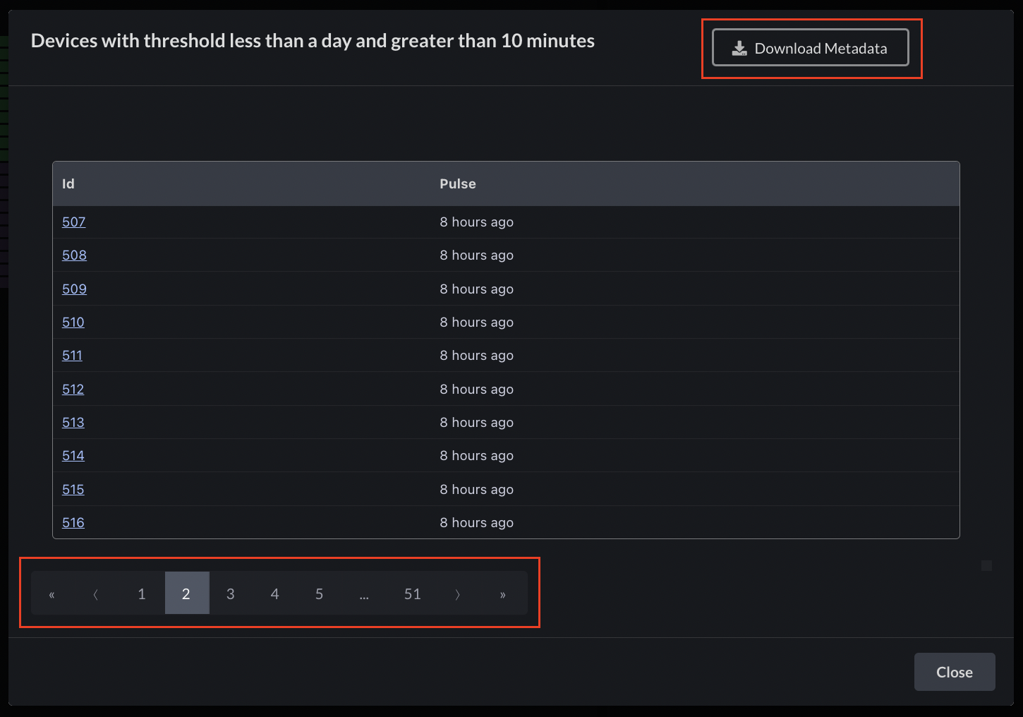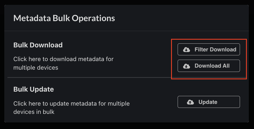 After applying any filter in device management, you now have the option to download the metadata of the filtered devices, as well as the metadata of all devices.