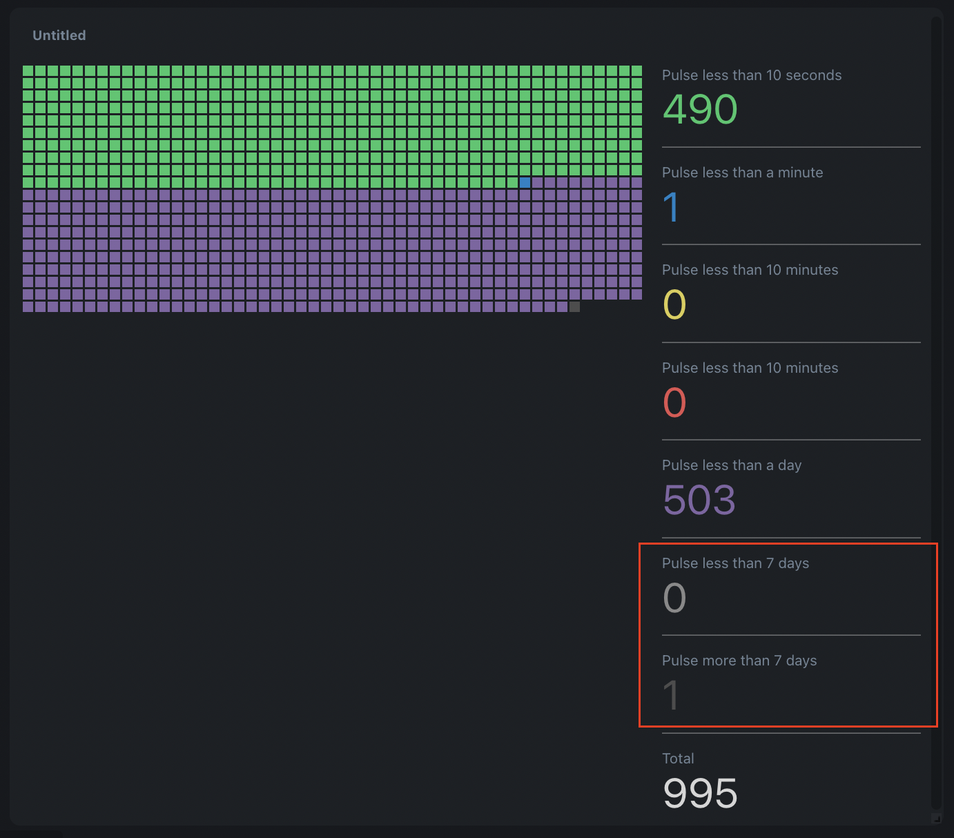 Device pulse panel now includes the pulse of all devices, regardless of whether they fall within the specified thresholds. It shows the pulse starting from the last threshold up to the selected time range, and also displays pulse measurements beyond that time range as separate data. In addition, it indicates the total number of devices that have been selected by the applied filters.