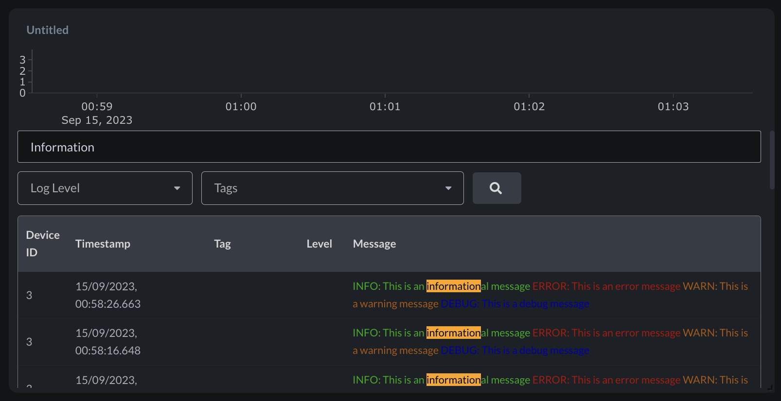Now, when you perform a search in the logs panel, all instances of your search keywords will be highlighted. This makes it easier to spot critical information without having to read through each line of log messages. The highlighted text ensures that you can quickly locate and analyze the data you need.