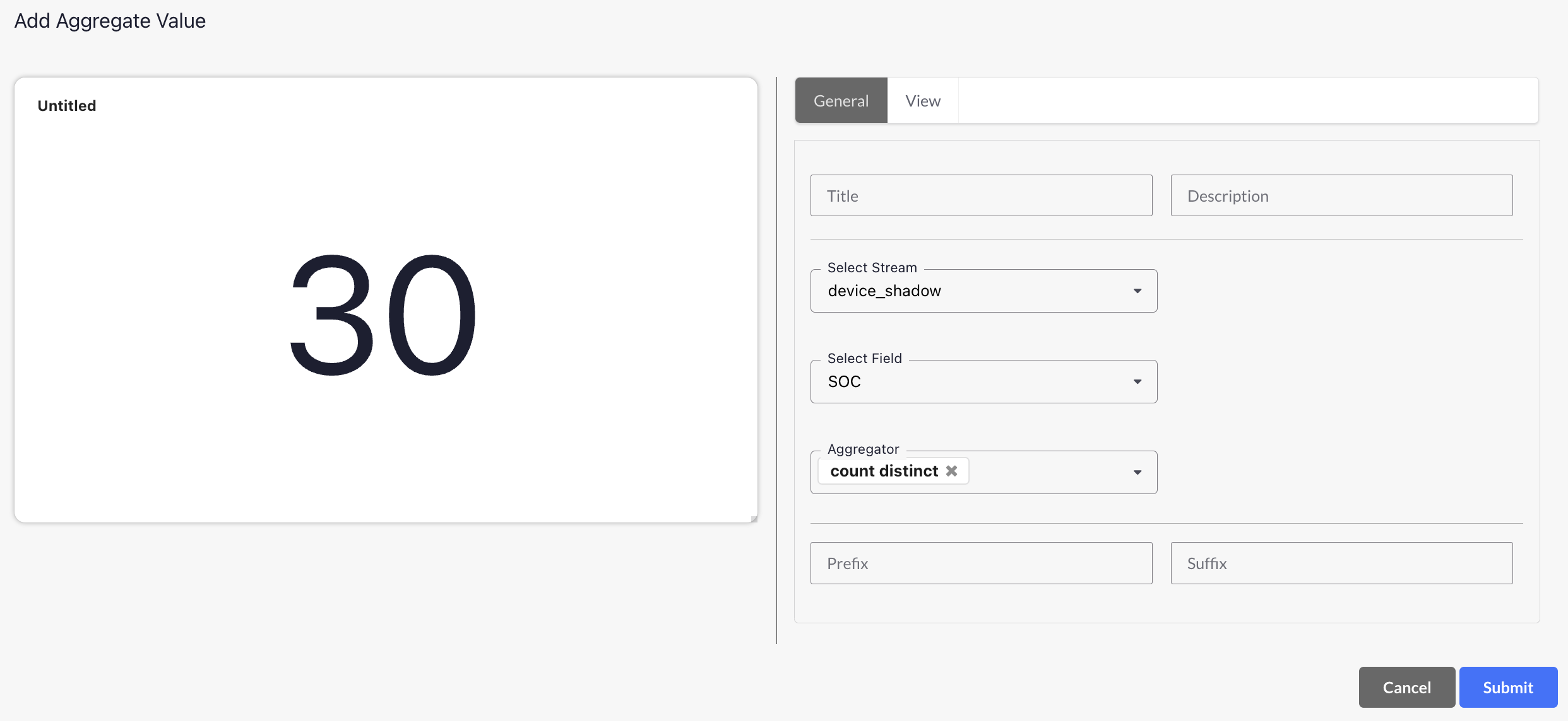 Aggregate Value panel: New “Count Distinct” Aggregator