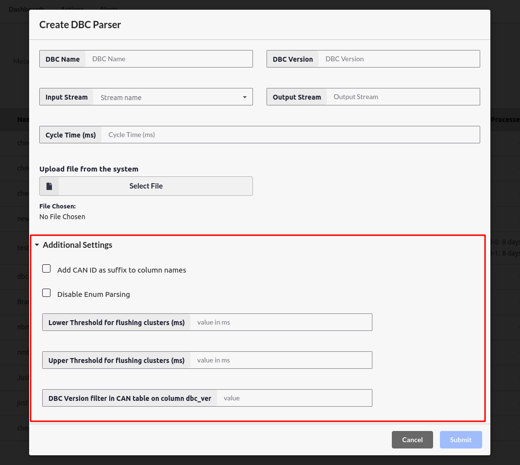 Additional settings in DBC Parsers