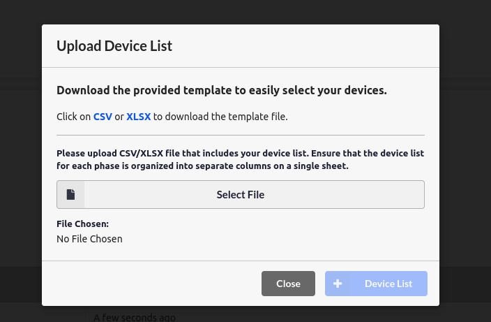 CSV/XLSX file upload for selecting devices in multiple phases