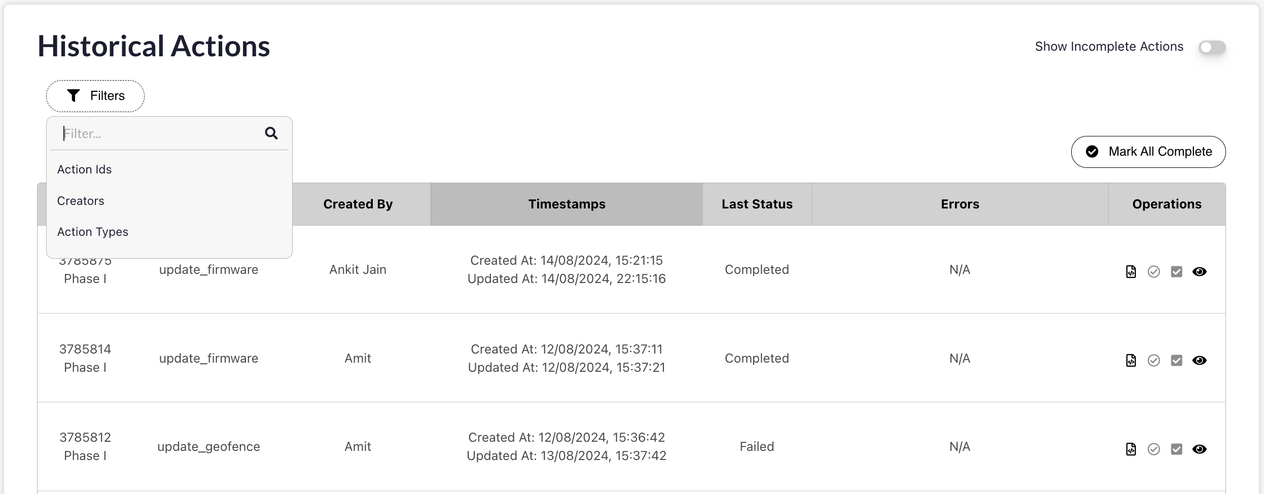 Device Action History Improvements