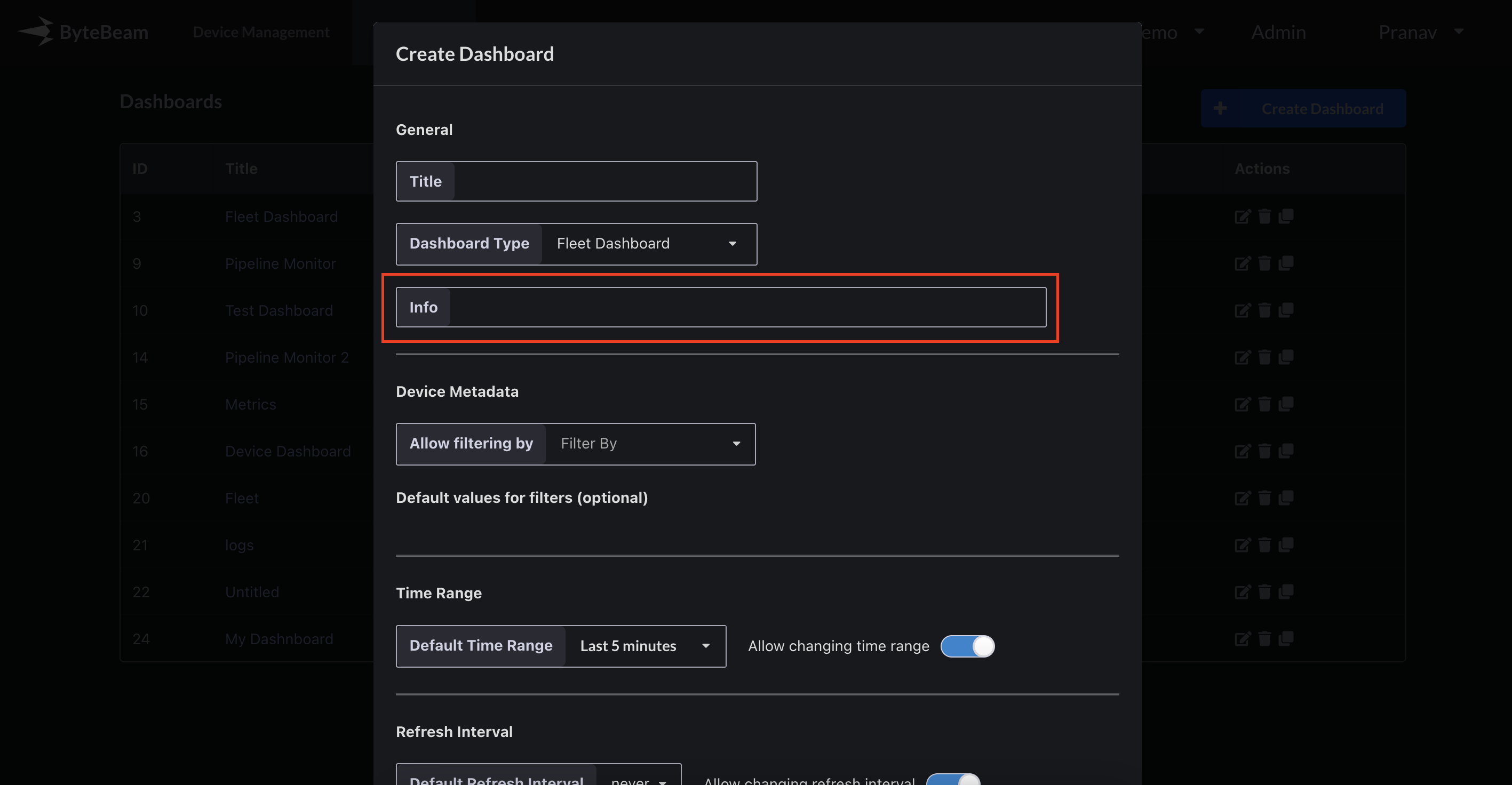 You can now add Info in Dashboard settings, which would be visible in Dashboard list