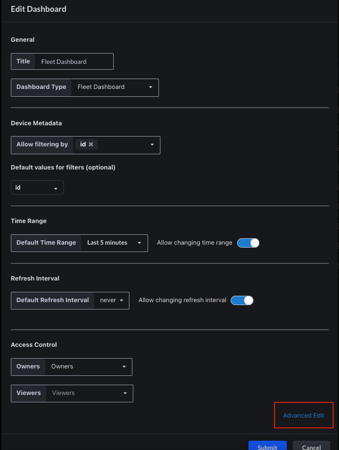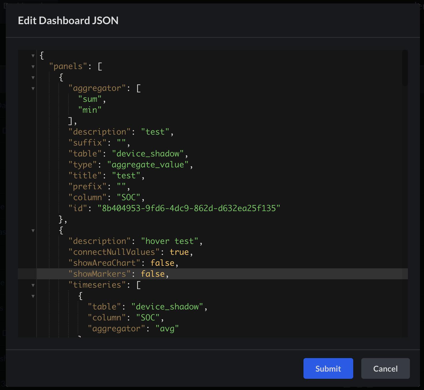 When you edit the dashboard you get an ‘Advanced Edit’ option at the bottom, on clicking it you get taken to editor page, where power users can directly edit the JSON body of the Dashboard