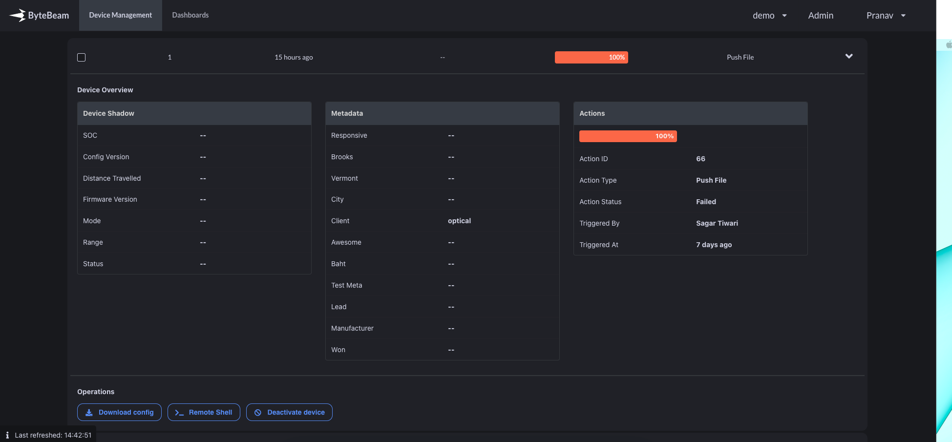 We have made more space in the device management by organising the Metadata, Device shadow and recent Action details inside the collapsible Accordion.