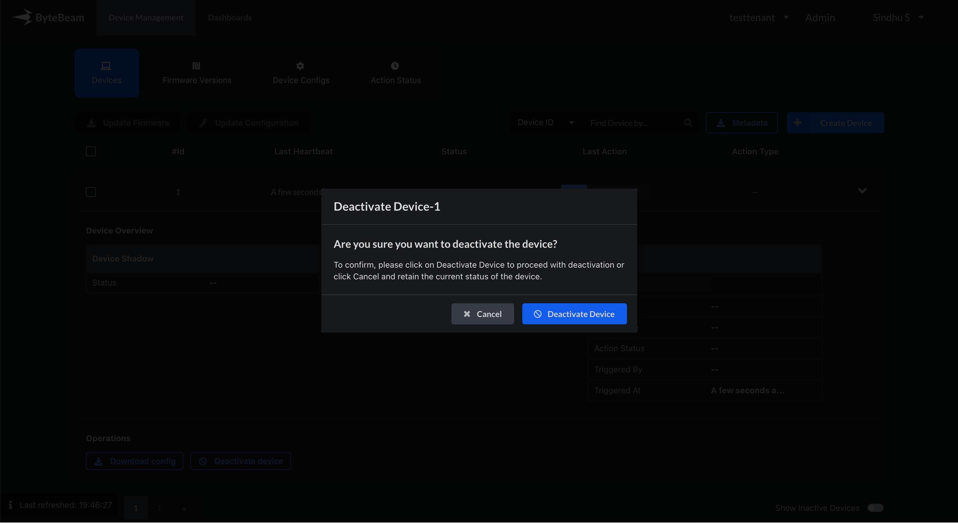 Now the platform will ask for confirmation, when any device is activated or deactivated