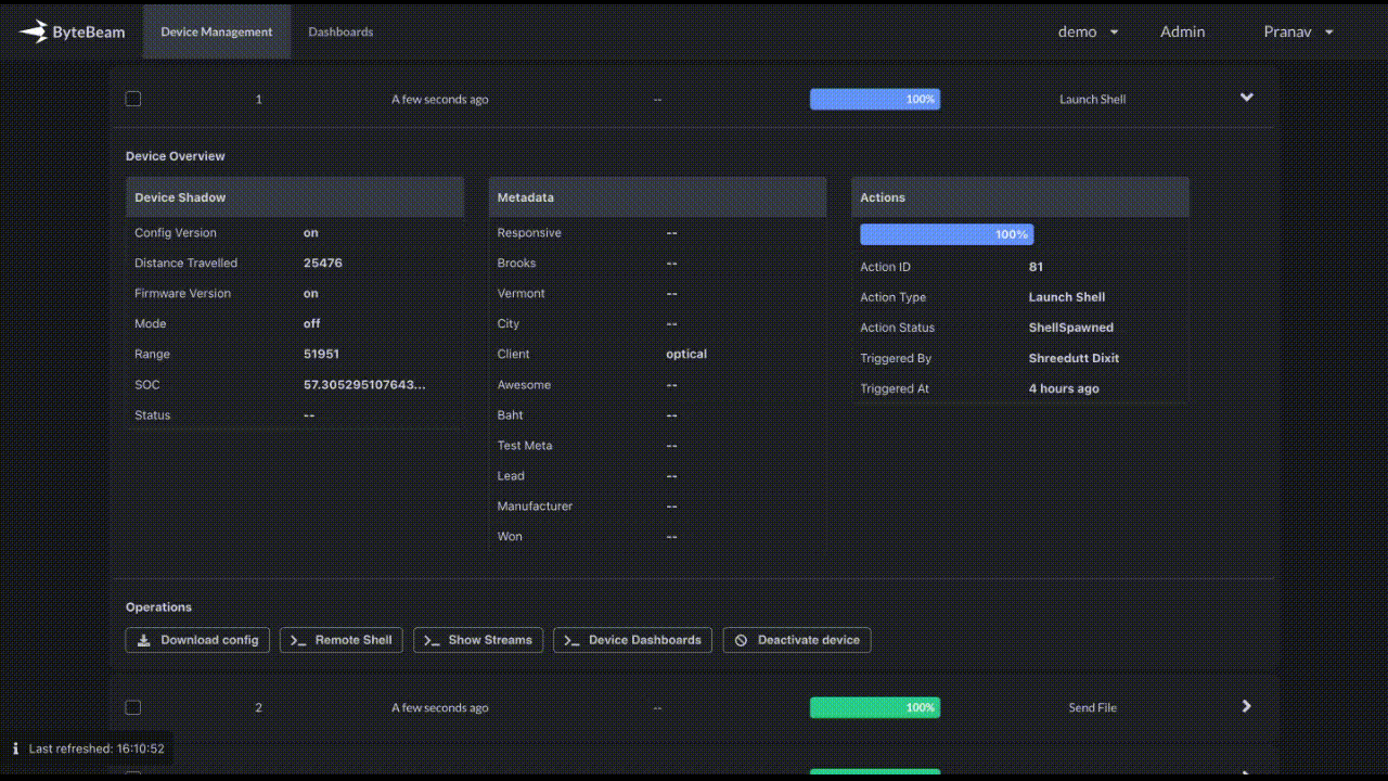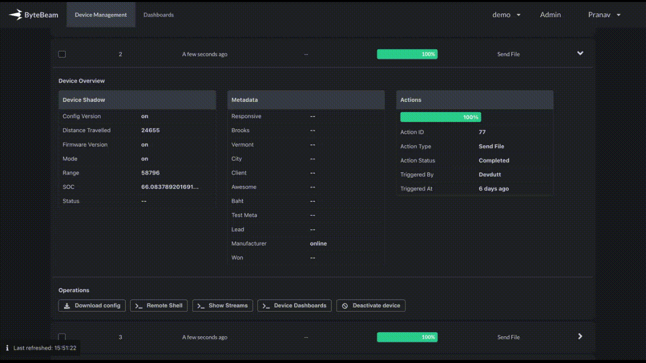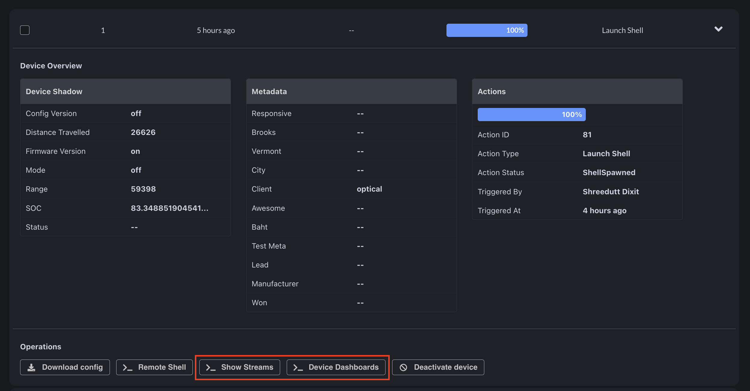 From Device Management, we can now directly open device dashboards and see the content of any streams for the device