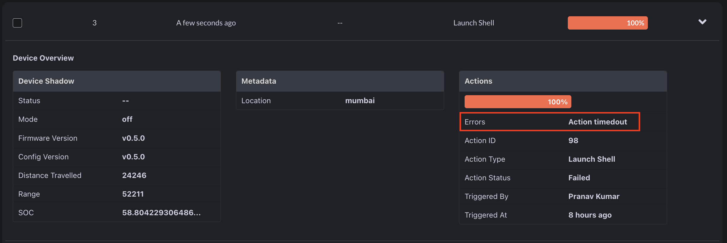 If any action has failed, you can see the status as well as the error message in Device Management directly