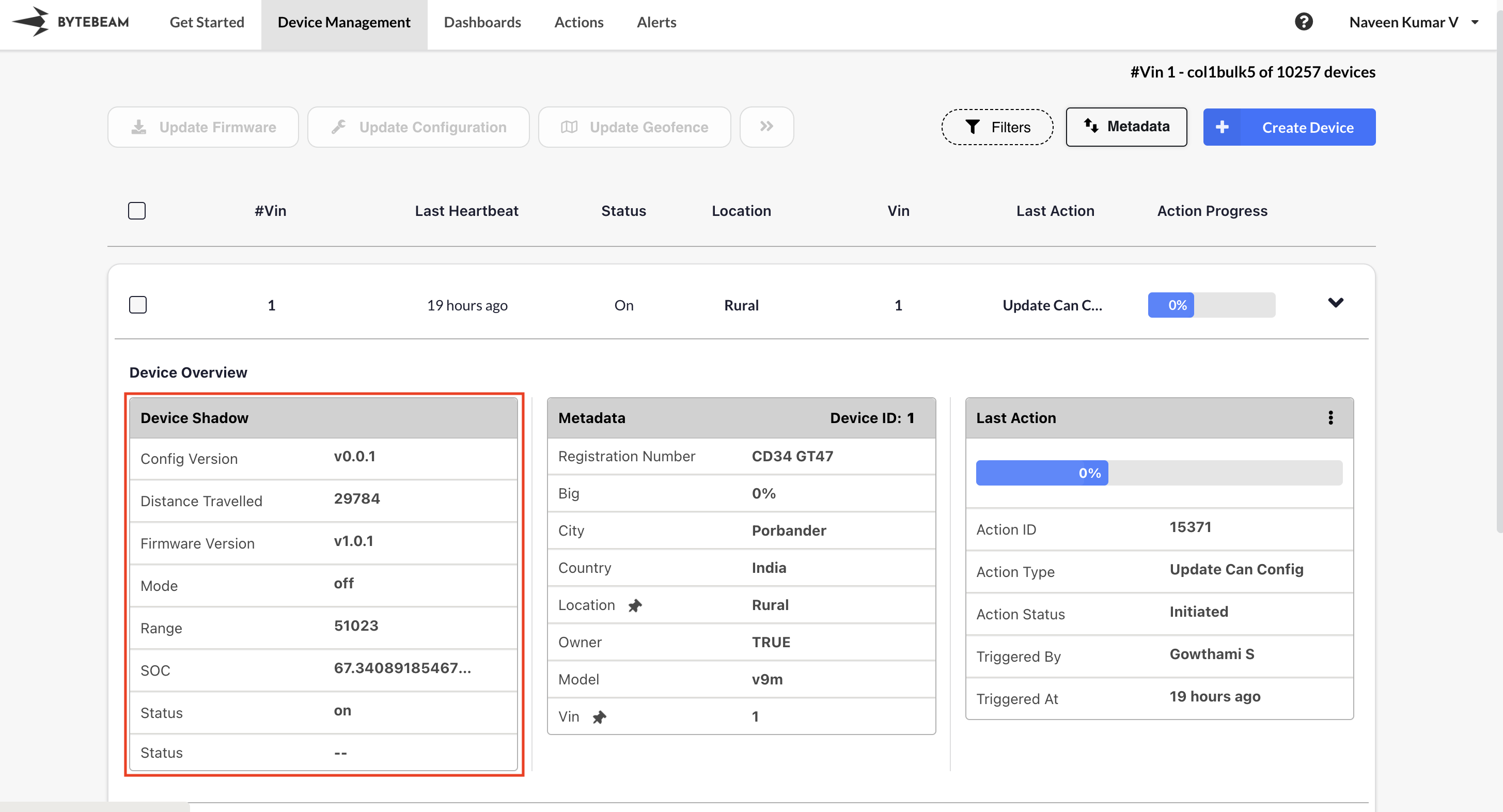 Skip to main contentDevice Shadow is a special stream that is created by default with every new project on Bytebeam. Device shadow is a digital clone of your Device. By default, it has one field called Status representing the status of the device. You can add other important parameters that help you keep track of the state of the device to this Stream.